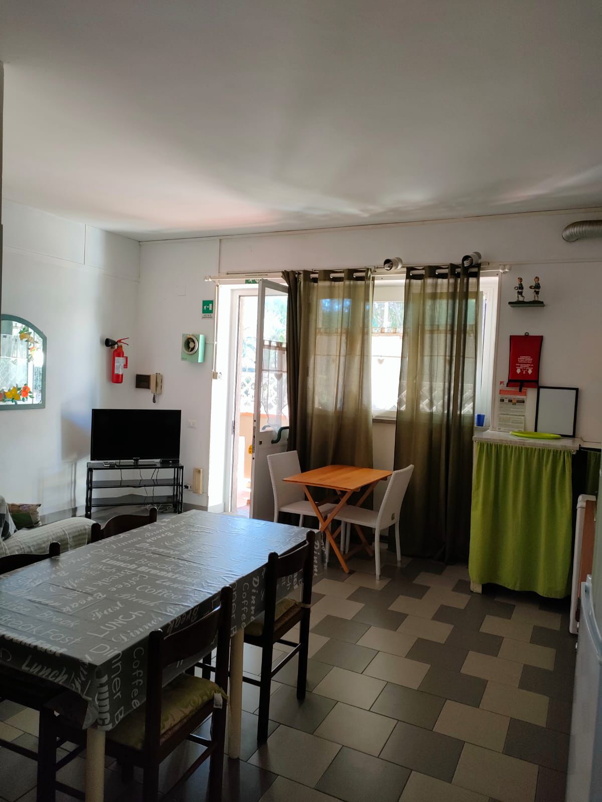 Appartamento Bilocale con bagno e piccola veranda esterna con tavolo.